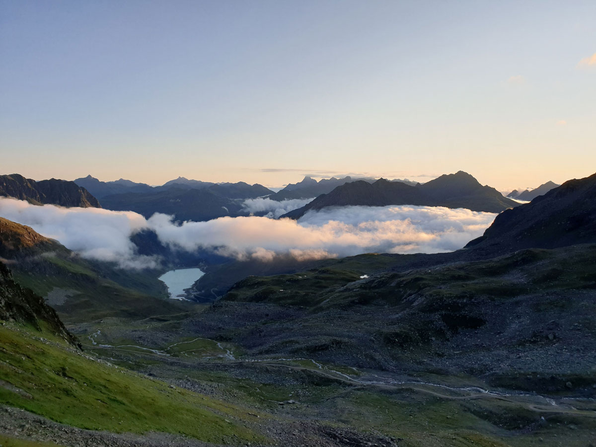 Am darauffolgenden Morgen entscheiden wir je nach Wetter: Entweder steigen wir über die Seelücke zur Saarbrücker Hütte ab oder wandern aussichtsreich Richtung Hochmaderer. Unser letztes Etappenziel ist das Madlener Haus auf der Bieler Höhe, wo wir den Abschluss unserer Wanderreise feiern. Am folgenden Morgen heißt es Abschied nehmen.